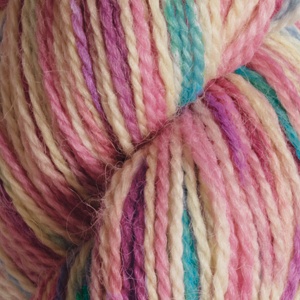 Tis the lovely Unicorn by Imagination Hand Painted Yarns, brought to you by knitpicks yarn . Only $4.99 a hank, 219 yards per hank, 50% Merino Wool, 25% Superfine Alpaca, and 25% Nylon. Delightful colors of which remind me of the regrettable unicorn wallpaper lining my bedroom. Available on the twenty fifth.